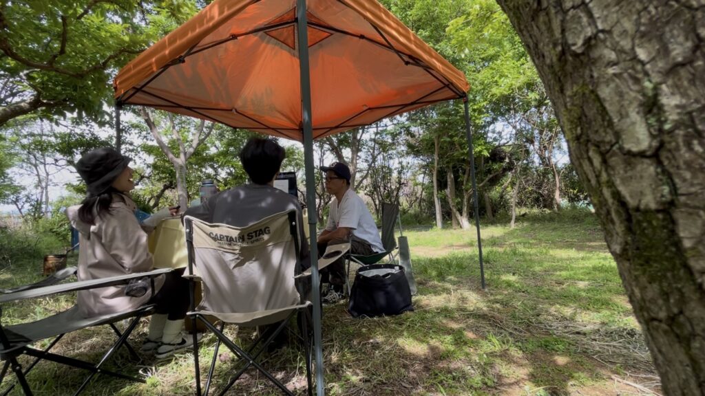快く蜂場に用意して頂いた特設スタジオでの収録は、木漏れ日の中、屋外ならではの音も入り、巣箱の見学まで
