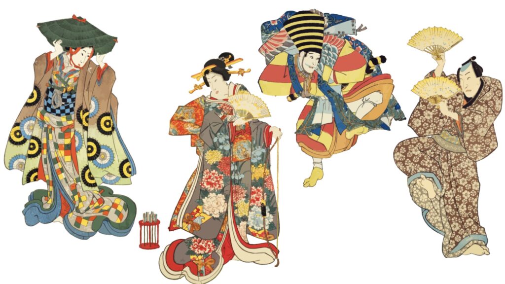 たしかにお世辞にも美男美女とは言えないものの、多くの浮世絵でからだ全身の動きが特徴的に描かれています