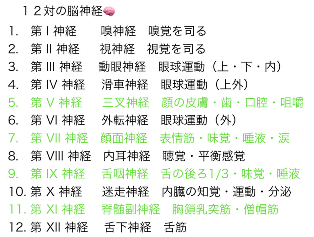 (※舌の後ろ1/3、喉の奥や口蓋垂(のどちんこ)を支配する神経)